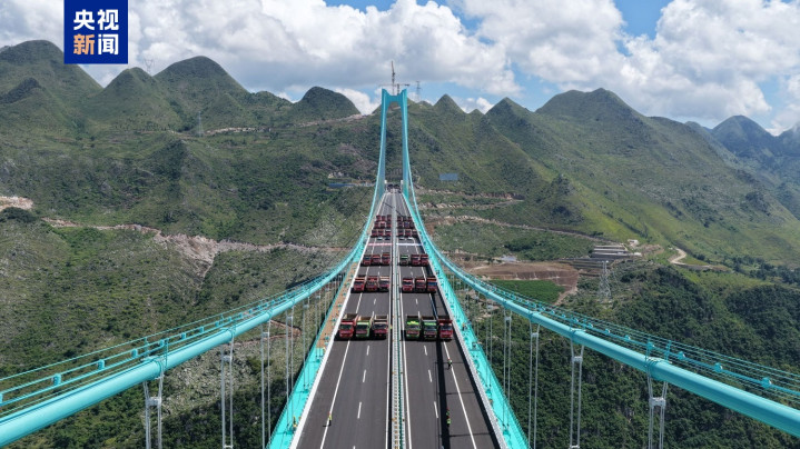 经过5天紧张有序的检测,花江峡谷大桥荷载试验全部顺利完成,向着通车目标迈出关键一步。